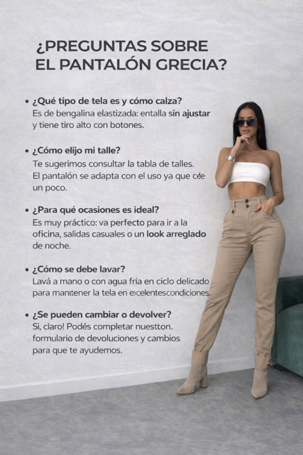 Está confeccionado en bengalina elastizada, una tela que acompaña el cuerpo sin ajustar de más y permite moverte con total comodidad durante todo el día.