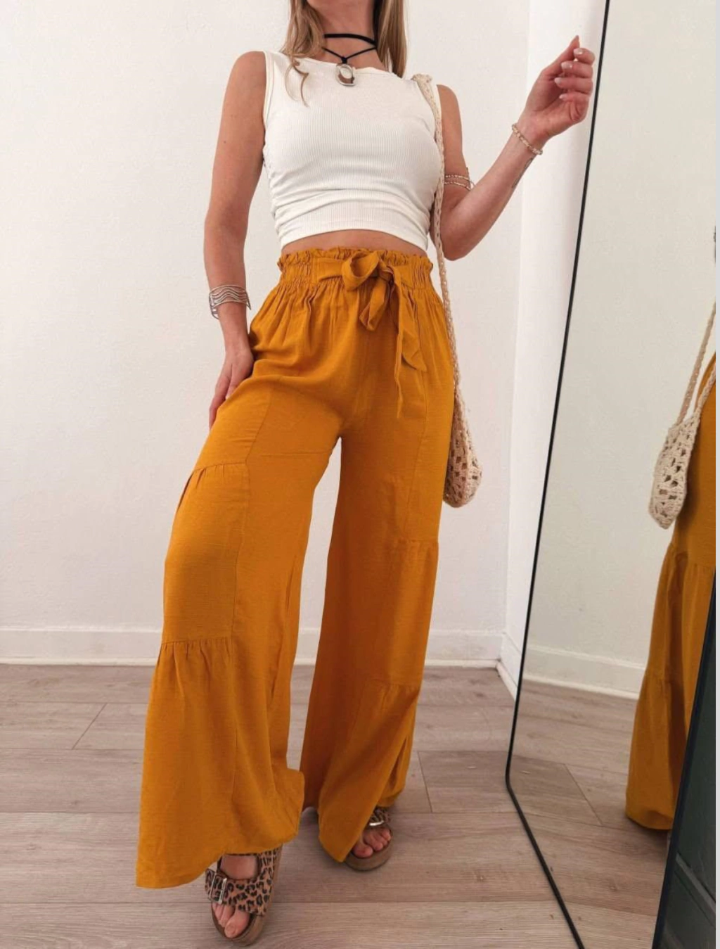 Sumar este maxi palazzo a tu guardarropa es apostar a una prenda que combina calidad, diseño y funcionalidad. Su tela natural y su cintura elástica garantizan un ajuste ideal y una sensación de confort que dura todo el día. No dejes pasar la oportunidad de renovar tu estilo con una pieza versátil y elegante que te acompañará en cada paso.