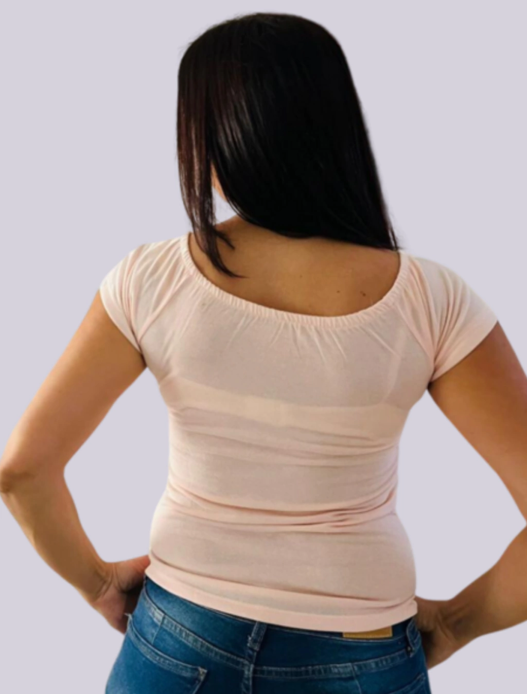 Detalles únicos como el elástico y volado en el escote que diferencian esta remera, sumando un aire sofisticado sin perder frescura.