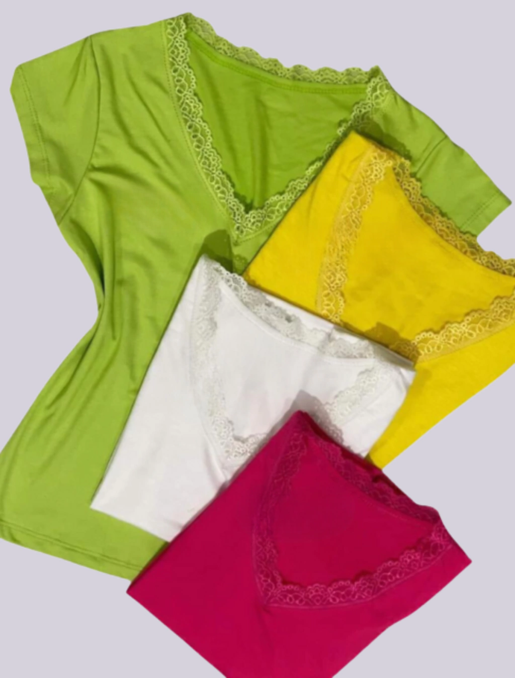 Sumar esta remera a tu guardarropa es apostar a una prenda que respeta tu piel, acompaña tus movimientos y realza tu estilo con sutileza. Su talle único facilita la elección y su diseño con puntilla convierte a esta remera en una pieza especial para cualquier ocasión.