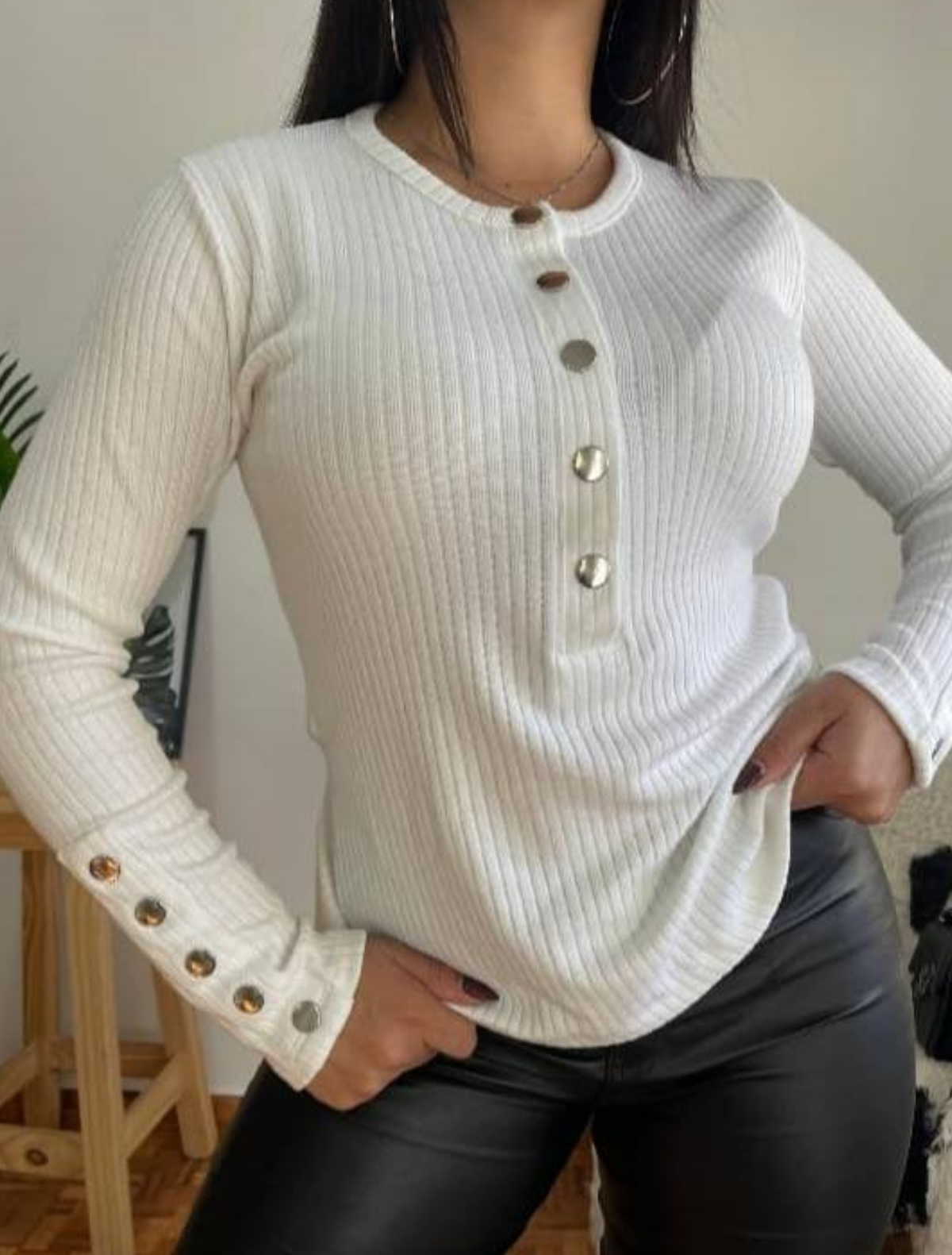 Sweater en lanilla de morley, con detalle de botones que le aporta un toque moderno y distinto. Ideal para looks cómodos con estilo.