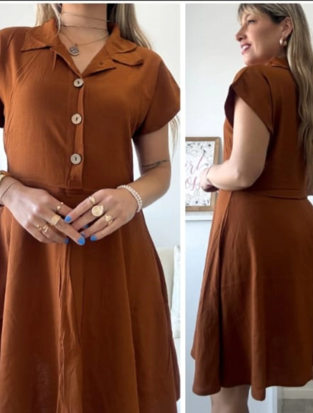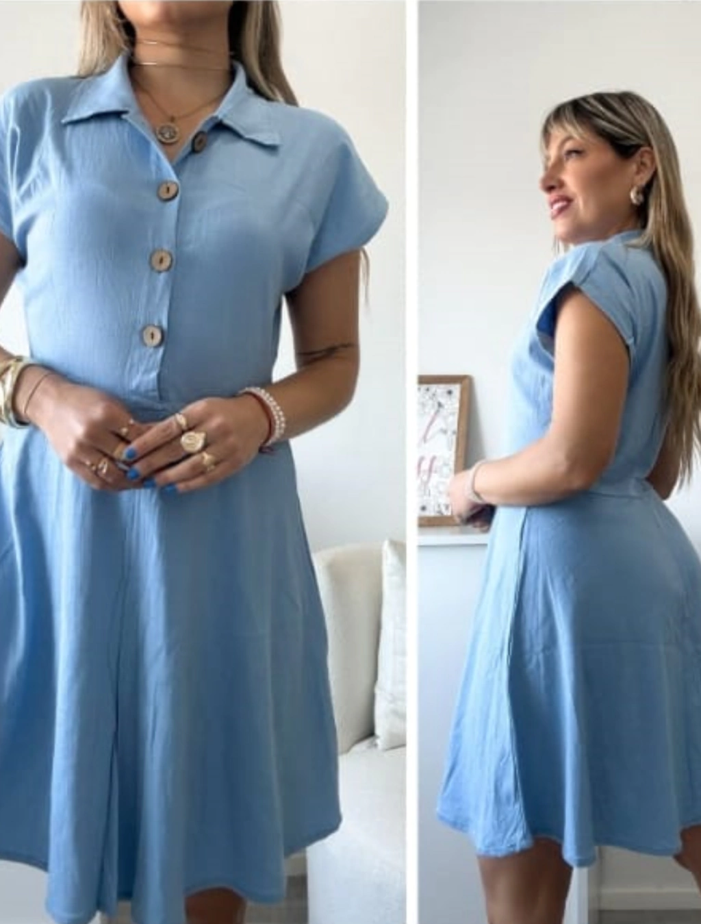 Sumar este vestido a tu guardarropa es apostar a una prenda que combina calidad, diseño y funcionalidad. Su corte campana y escote tipo chomba con botones te permiten destacar con un estilo único y sofisticado, mientras que la tela lino spandex asegura confort y adaptabilidad.